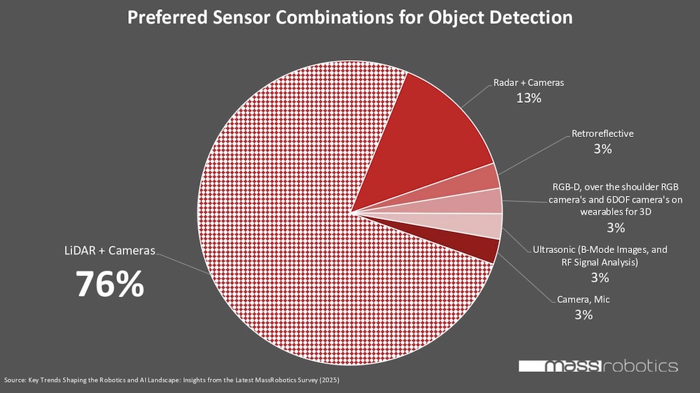 Object detection is foundational to robotic autonomy, and the survey highlights a strong reliance on sophisticated sensor combinations. Over two-thirds of respondents (67.5%) utilize LiDAR in conjunction with cameras (85% use cameras in general), which 75.7% of respondents deemed the “most effective” combination. Other sensor types commonly used include Time-of-Flight (50%) and IMUs (62.5%).
