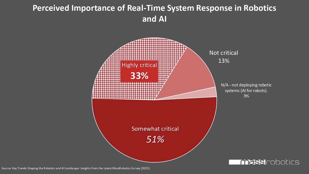 Motor control remains a core component of robotics systems, with servo motors (55.3%), DC motors (44.7%), and stepper motors (31.6%) being the most common types used. The survey revealed that real-time response is “highly critical” for 51.3% of respondents, and “somewhat critical” for another 33.3%.