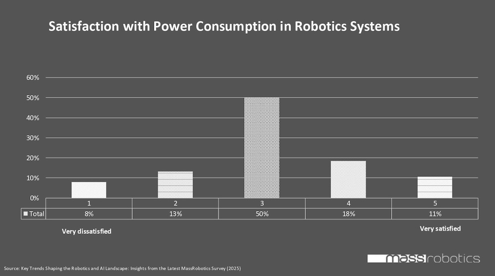 Achieving an optimal balance between performance and energy efficiency is a persistent challenge in robotics. Half of the respondents rated their current satisfaction with power consumption at a “3” on a 1-5 scale (with 5 being most satisfied), indicating moderate satisfaction. Only 10.5% expressed high satisfaction.