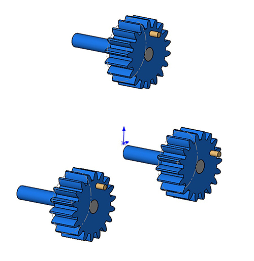 Now, mate the Carrier shafts to the centers of each Planet Gear (Concentric) and flush with their front faces (Coincident).